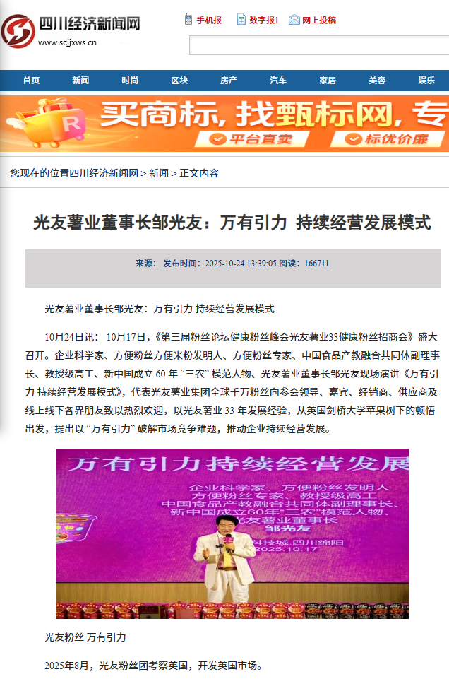轉(zhuǎn)載四川經(jīng)濟(jì)新聞網(wǎng)-光友薯業(yè)董事長(zhǎng)鄒光友:萬(wàn)有引力 持續(xù)經(jīng)營(yíng)發(fā)展模式